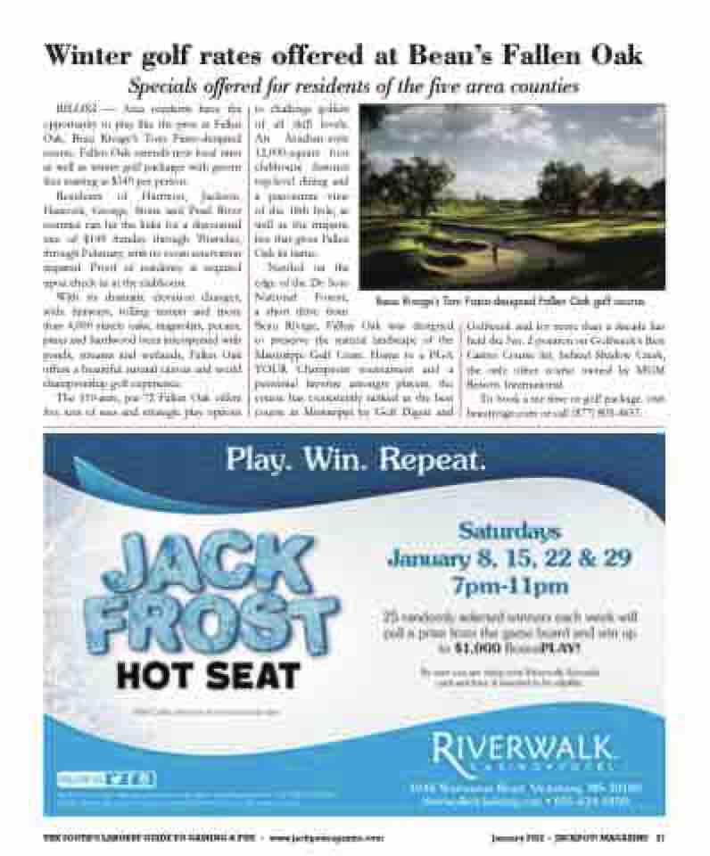 BILOXI — Area residents have the opportunity to play like the pros at Fallen Oak, Beau Rivage’s Tom Fazio-designed course. Fallen Oak extends new local rates as well as winter golf packages with greens fees starting at $149 per person.