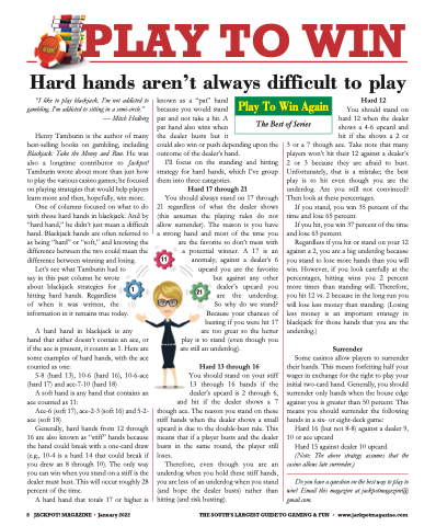 One of columns focused on what to do with those hard hands in blackjack. And by “hard hand,” he didn’t just mean a difficult hand. Blackjack hands are often referred to as being “hard” or “soft,” and knowing the difference between the two could mean the difference between winning and losing.