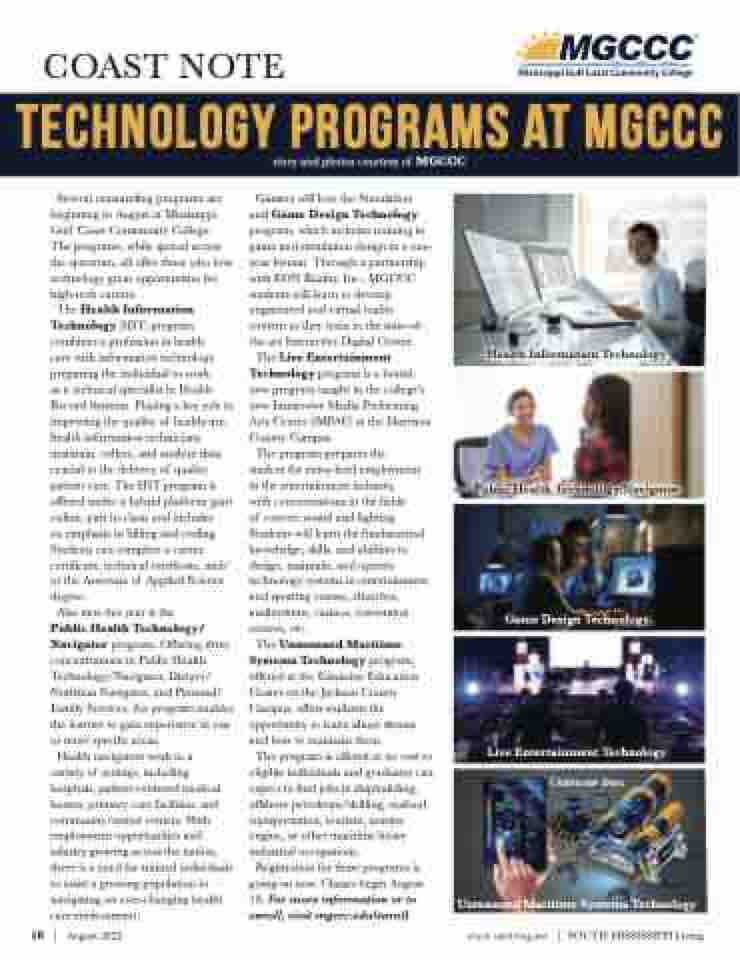 Several outstanding programs are beginning in August at Mississippi Gulf Coast Community College. The programs, while spread across the spectrum, all offer those who love technology great opportunities for high-tech careers.