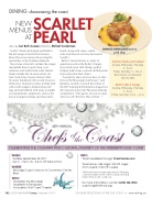 New items at Scarlet’s include the orange marmalade bone-in pork chop, veal milanese, and stuffed cold water lobster. Steaks include the 16-ounce prime cut New York strip, 14-ounce bone-in filet, 32-ounce Tomahawk rib eye and 16-ounce Delmonico. Seafood favorites include Gulf cobia, Gulf snapper, Alaskan king crab legs and Gulf redfish with many available accompaniments. Appetizers, such as the bacon-wrapped scallops and charcuterie